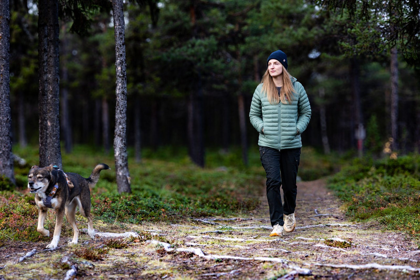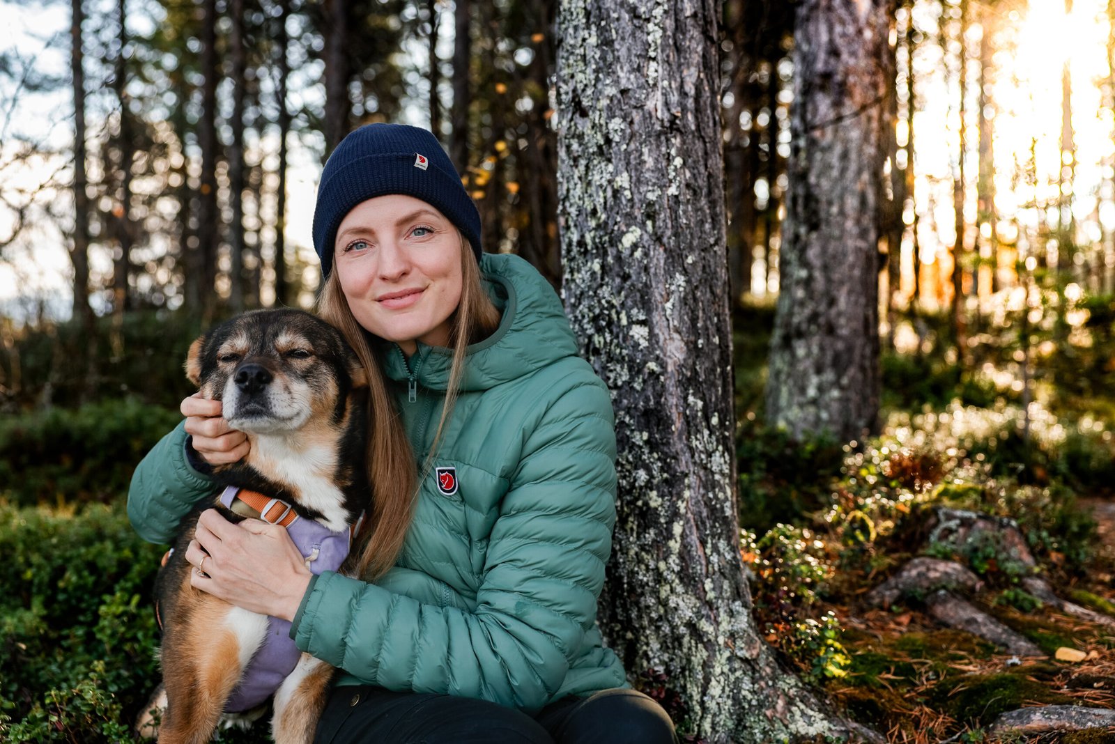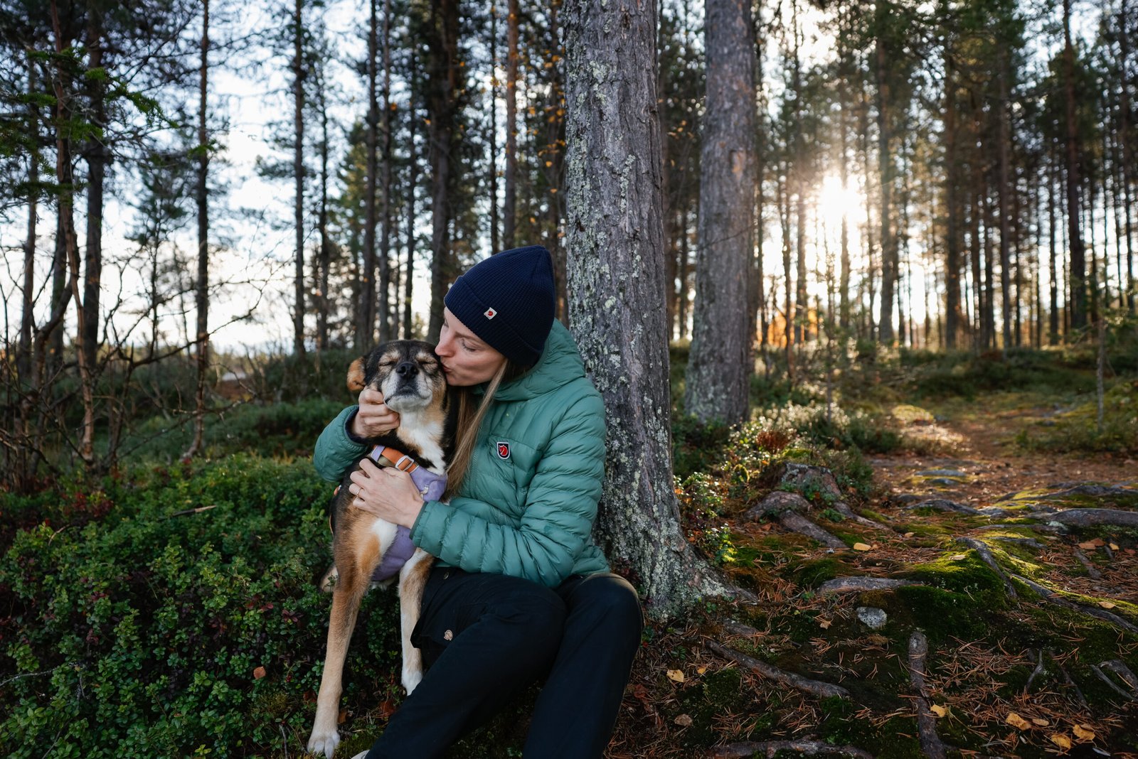 Фотосесията беше на открито – с нейното куче, сред мъх, камъни и вода. Без сценография, без постановка. Само естествена светлина и онзи миг на искреност, когато човек забравя, че има камера пред себе си. Kitty беше облечена в дрехи на Fjällräven – класически за северния стил, които подчертаваха нейната автентичност и връзка с природата.